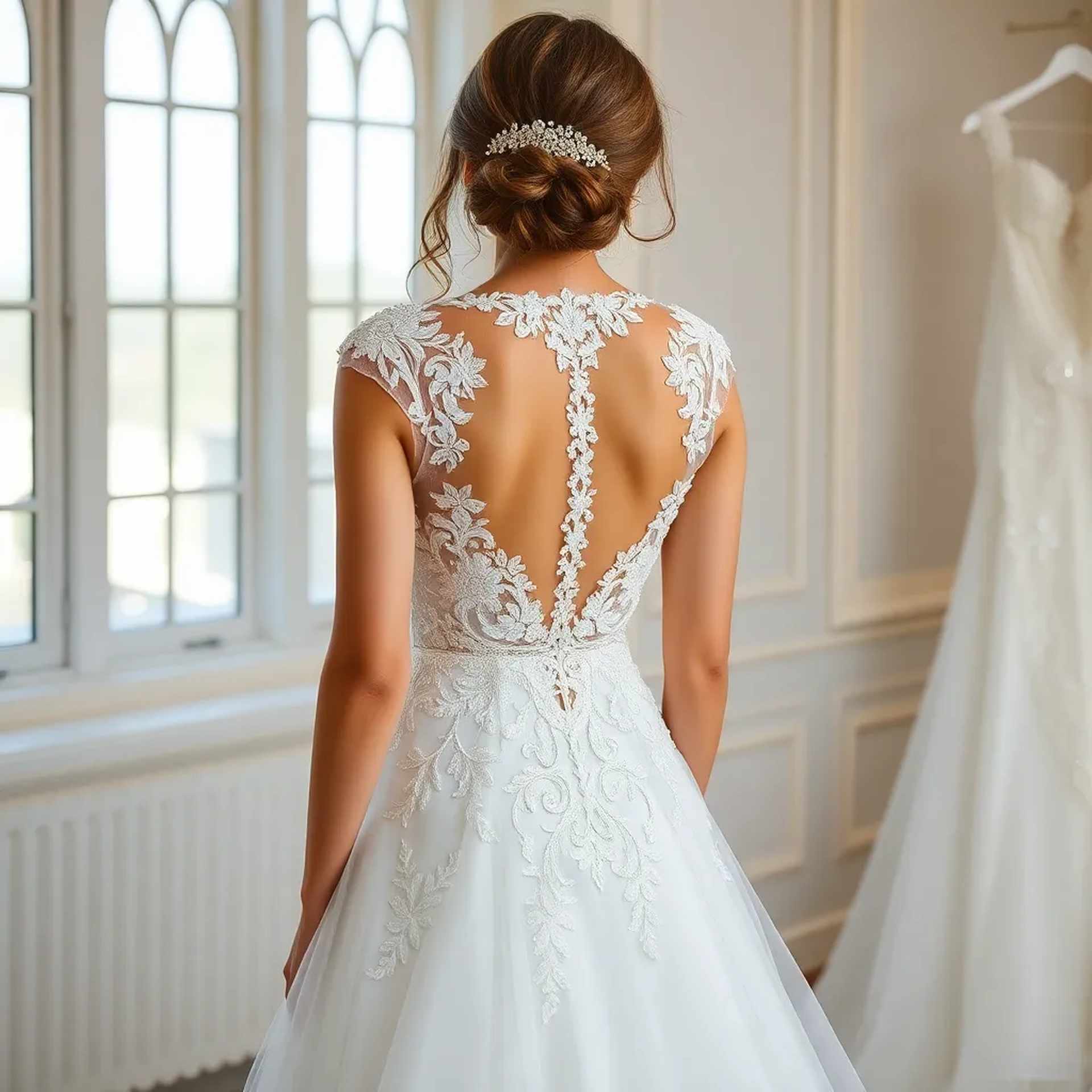 Completa il tuo look con i nostri accessori esclusivi: veli, gioielli, scarpe e borse, tutto coordinato perfettamente con il tuo abito.